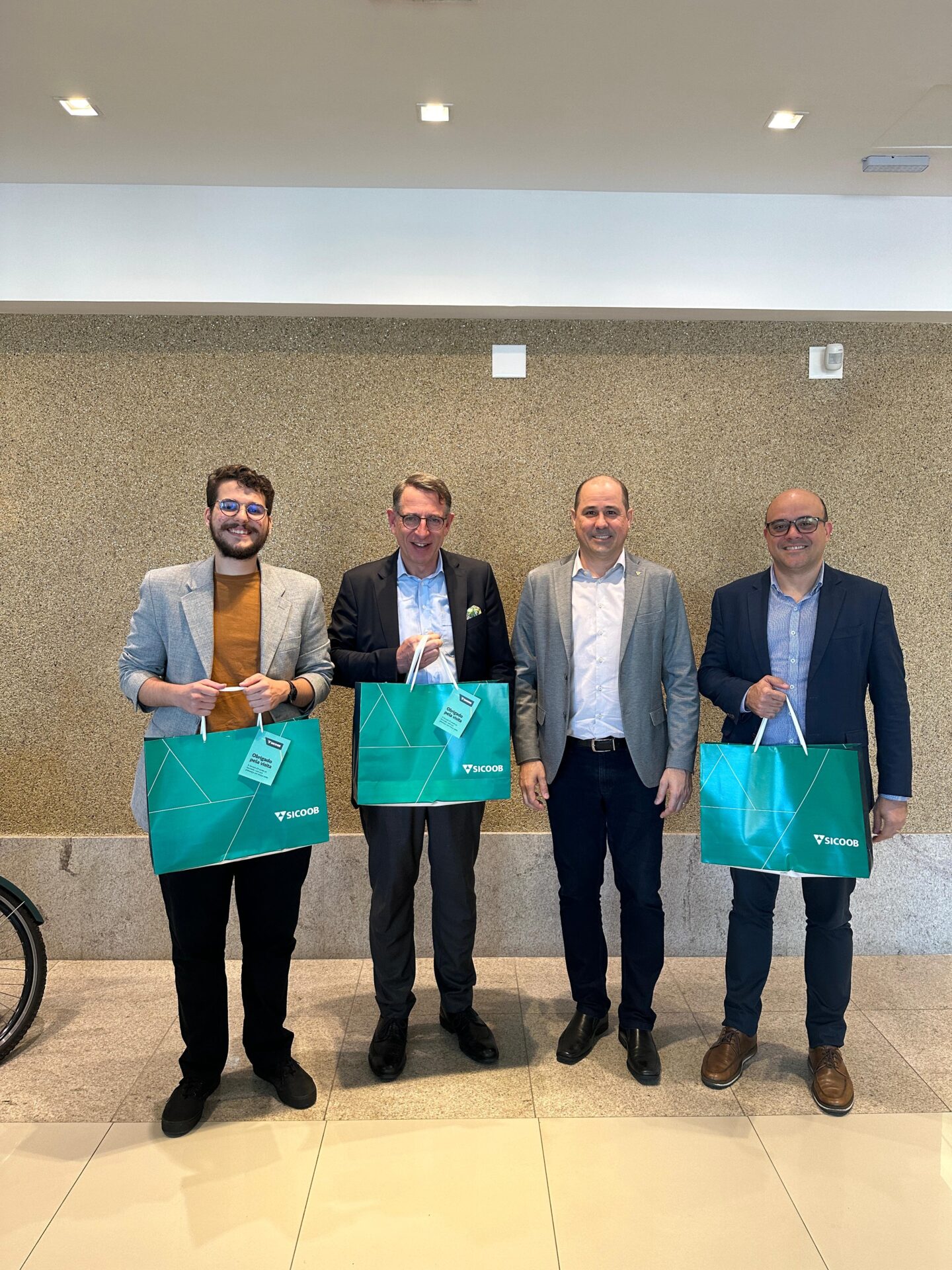 Na ocasião, os executivos do Sicoob fizeram uma apresentação institucional para o alemão e também entregaram uma carta, que destaca o compromisso da instituição com o desenvolvimento sustentável, apresentando seu Plano de Sustentabilidade.