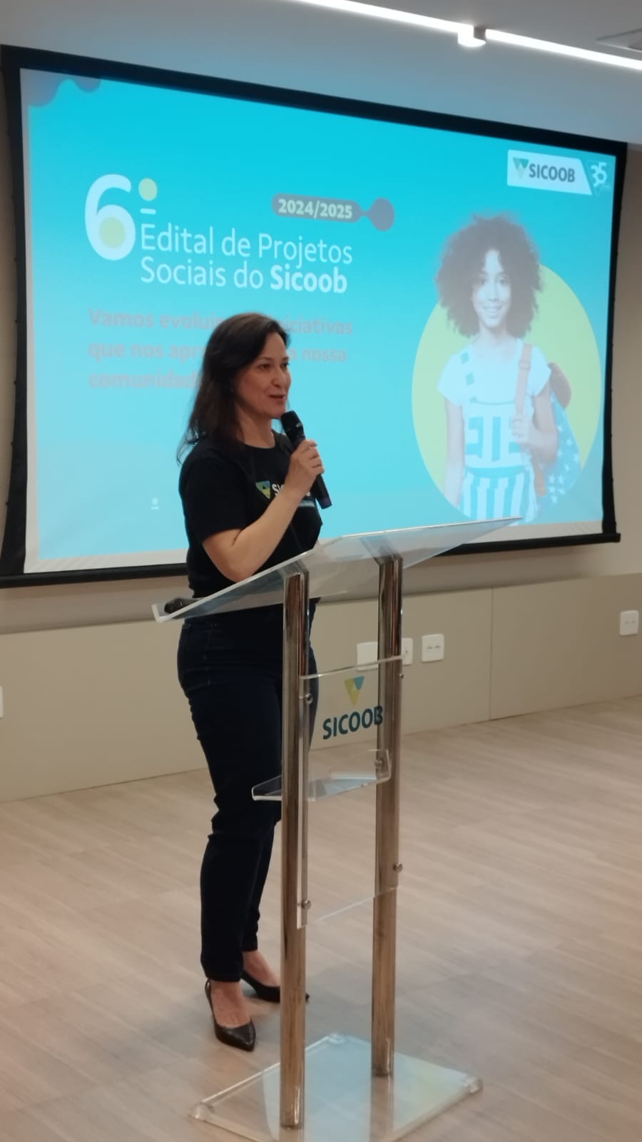 A cerimônia contou com lideranças da cooperativa, incluindo a diretora operacional, Michelle Sabaini, que, em sua fala, enfatizou a abrangência e o impacto do projeto: “Ao todo, 57 instituições serão beneficiadas de 2024 até 2025. Hoje, entregamos R$ 1,2 milhão em projetos sociais, o que nos dá essa responsabilidade conjunta de distribuir alegria e apoio social para as comunidades onde atuamos”.